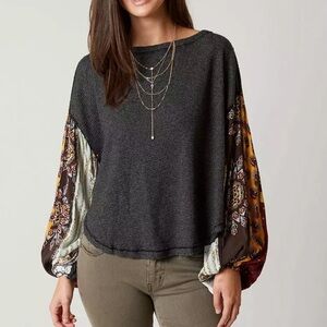 Free People boho style top with patchwork balloon sleeves and thermal contrast body.