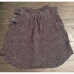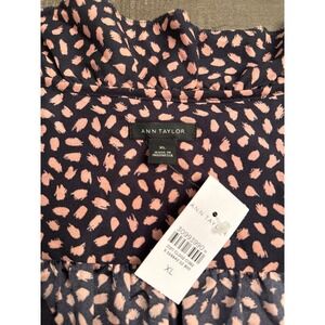 NWT Ann Taylor Women's Black Pink Short Sleeve Ruffle PullOver Blouse Size XL