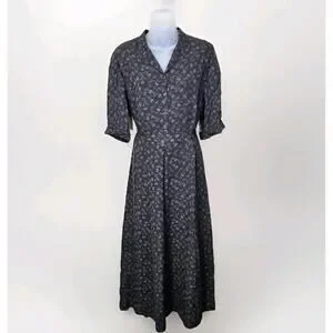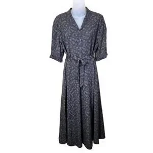 Sundance Womens 10 Silk Floral Maxi Dress Retro Botanical Palm Tree Belted Green