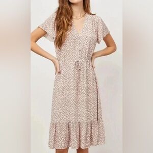 Pink and white floral ditsy print V-neck dress. Size. XL but could fit smaller.