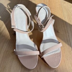 Keywords: Elizabeth and James, nude heels, ankle strap heels, stiletto sandals, dressy shoes, evening shoes, party shoes, designer heels, women's fashion, leather sandals, made in spain