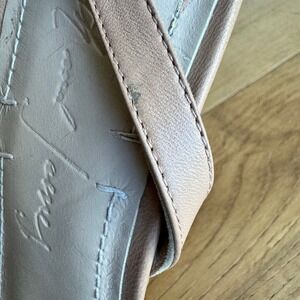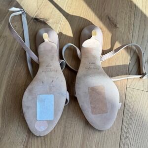 Call-outs: The soles and heels show no outdoor wear but have marks from The Rack price stickers. There's scuffing on the inside of the right toe and a scratch on the left strap but they're hardly noticeable when worn.