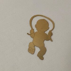 The ornament shows a baby or toddler jumping rope, and would be great to have engraved for a child's birthday or Christmas gift. The ornament still has the plastic film on the front which has protected it from scratches through the years.