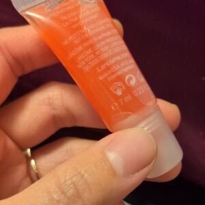 Elegant Lancome cosmetic bag in rich burgundy. Includes Juicy Tubes lip gloss and Cils Booster XL mascara base.