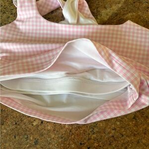 YPB SculptLUX top in white and pink gingham. No pads but gold for them.