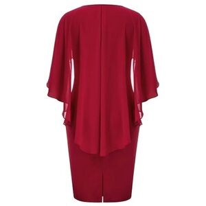 This elegant maroon dress is perfect for any occasion. Its stylish design and vibrant color make it a must-have in your wardrobe. Plus size chiffon ruffled cape sleeve bodycon pencil dress!