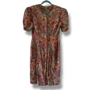 Vintage 70s Dawn Joy Brown Floral Button Up Dress Women’s Size Small Retro