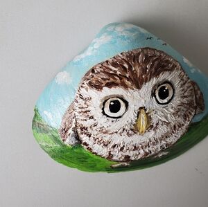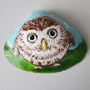 An original hand-painted acrylic painting on an upcycled clam seashell. Perfect as a cute decor piece, paper weight, or garden decoration.