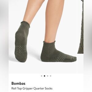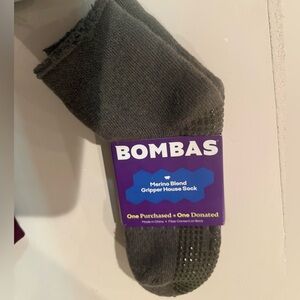 Bombas Merino Wool Blend Roll Top Gripper House Socks in olive green size medium