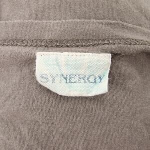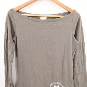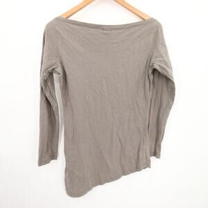 Synergy Blouse Gray Taupe Long Sleeve Asymmetrical Hem Boat Neck Feather Boho Size Medium