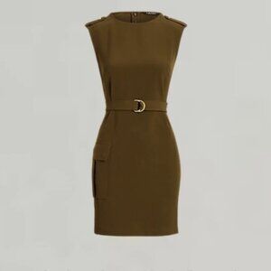 LAUREN RALPH LAUREN OLIVE GREEN BELTED DOUBLE FACED SLEEVELESS CREPE DRESS NWT