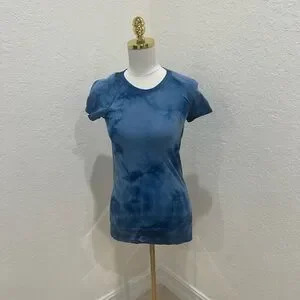 Lululemon Swiftly Tech Short-Sleeve Shirt 2.0 in the colorway named "Marble Dye Commander Blue". This athletic top is designed for running and training and is known for its high-performance features.