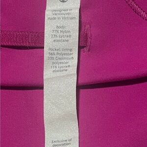 These Lululemon leggings in a bold pink color are a size 4 and crafted from a high-performance blend of 77% nylon and 23% Lycra® elastane for a smooth, supportive fit. Designed in Vancouver and made in Vietnam, they feature a Coolmax®-lined pocket for moisture management and comfort. Ideal for intense workouts or everyday wear. Excellent condition with care tag intact.