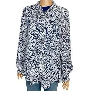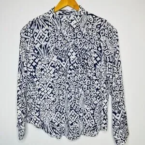 Lilly Pulitzer Sea View Peacock Button Down Shirt Size XL New White/Navy