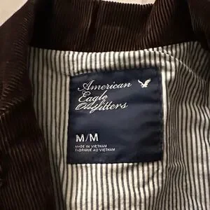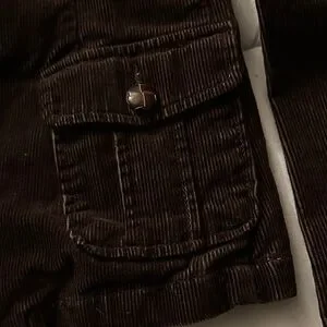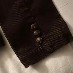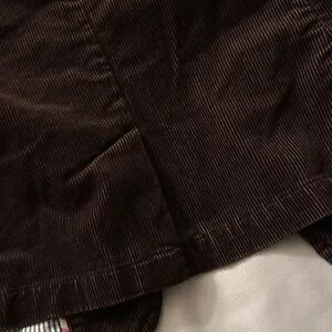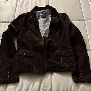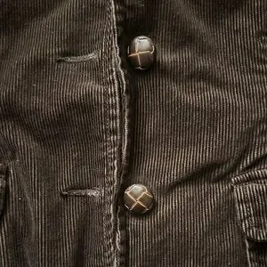Stylish dark brown blazer with button details. Ideal for versatile wear. Corduroy.