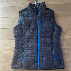 Stay warm and stylish with this navy blue quilted vest. Perfect for layering, it features a sleek design and comfortable fit.
