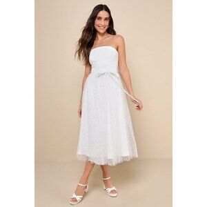 Lulus Immaculate Poise White Swiss Dot Strapless Midi Dress - Size S