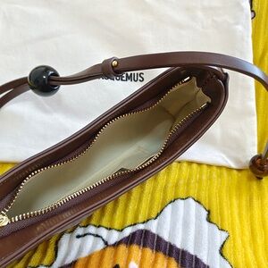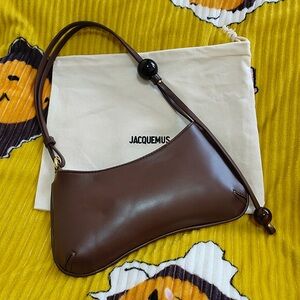 Chic and stylish shoulder bag by Jacquemus. Rich brown leather with sleek design. Perfect for elevating any outfit.