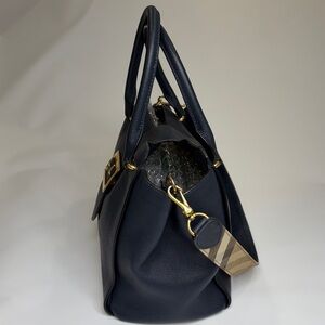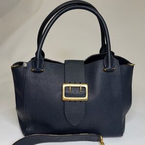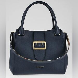 BURBERRY Blue Grained Leather Medium Buckle Tote Bag