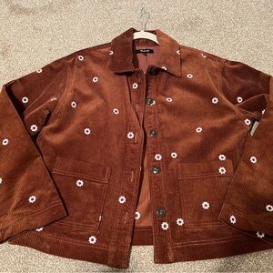 Madewell Embroidered Flower Floral Corduroy Crop Shirt-Jacket