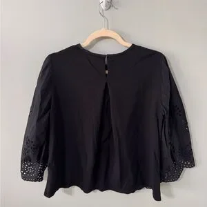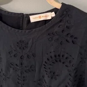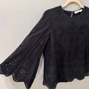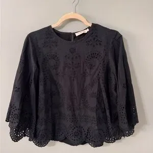 Tory Burch Women’s Mariana Eyelet Embroidered Black Blouse Scalloped Edges S
