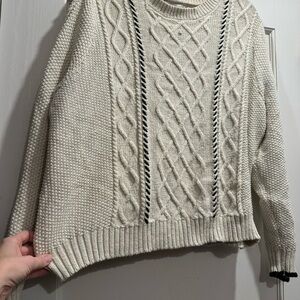 La Ligne Target Cream Chunky Cable Knit Contrast Stitch Sweater