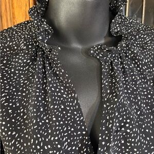 Sleeves: It features mid-length sleeves with elasticated, ruffled cuffs.
