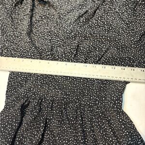 Print: A feminine, subtle white "confetti" print adorned on a black fabric background.