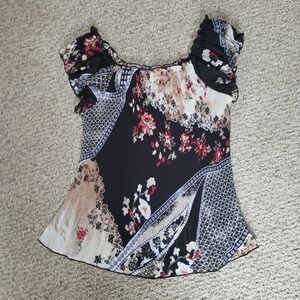Pleated black red cream floral blouse #fairycore