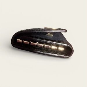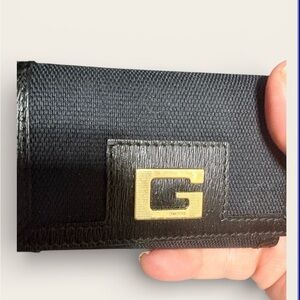 Elegant black key and card holder. Features a gold-tone logo accent. Perfect for organizing essentials.