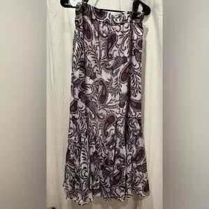 Chic maxi skirt with a bold paisley design. Flowy and stylish for any event.