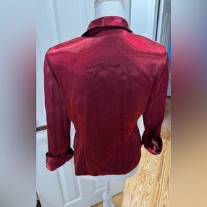 This stunning red satin blazer is perfect for adding a touch of elegance to any outfit. The luxurious fabric and classic design make it a versatile choice for both formal and casual occasions. Jewel buttons. Designer size 12