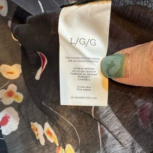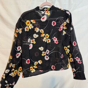 CAbi Black Blouse with Red and Yellow Floral Design