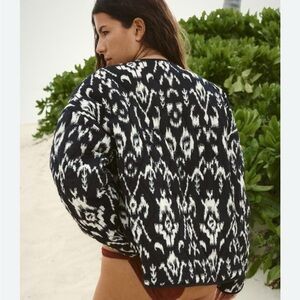 Stylish and versatile, this black and white patterned jacket is perfect for any occasion. Its chic design adds a touch of elegance to your wardrobe.