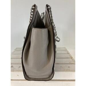 MICHAEL KORS LARGE GRAY PEBBLED LEATHER STUDED SHOULDER BAG