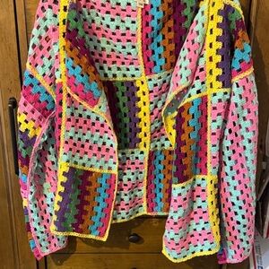 Vibrant crochet cardigan. Open front design. Perfect for layering.