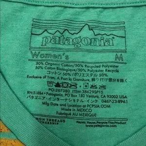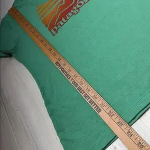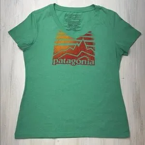 Patagonia V Neck Green and Orange Mountain Tee Sz M