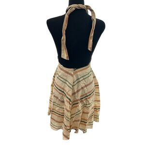 ZARA Striped Halter Neck Mini Dress Cutout Tan Green Orange XS