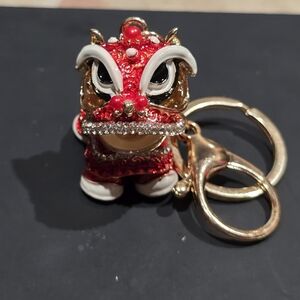 Brand new red enamel Chinese dragon key chain bag charm. Accented with clear pave rhinestone crystals. Head swivel. Brand new excellent condition