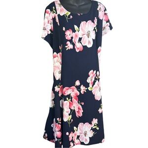 Jessica Howard navy blue and pink floral polyester fit and flare midi dress 24w