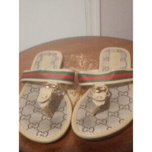 Women Gucci GG Web Stripe Thong Sandals EU 41 US 11 Flat Flip Flop Slide Slipper