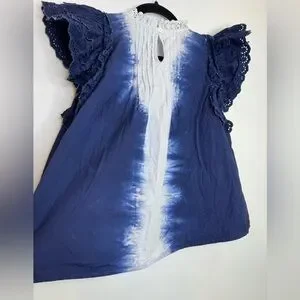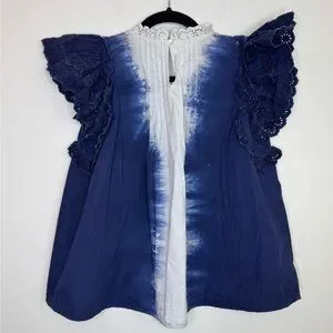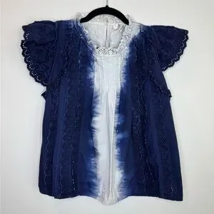 SEA New York "Evelyn" cotton tie dye blouse top XS blue white eylet lace ruffles