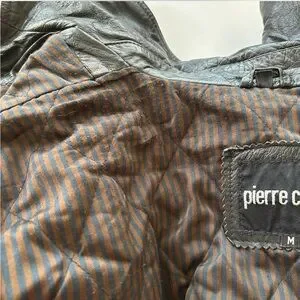Vintage Pierre Cardin leather bomber jacket with a distressed look.