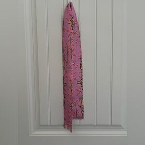 Beautiful pink with flower tiger design. Soft fringe at the ends. 💯 silk.