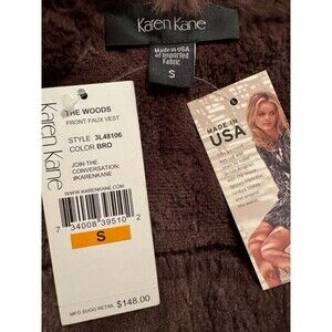 Karen Kane Brown Faux Fur & Faux Leather Open Front Vest Size Small NWT $148