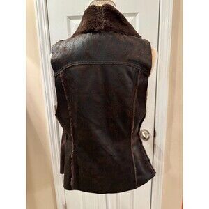 Karen Kane Faux Fur & Faux Leather Open-Front Vest Brown | NWT Size Small
