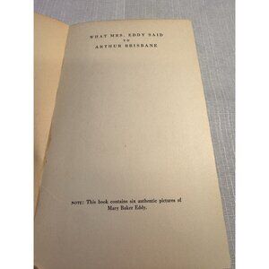 Original 1930 hardcover edition of What Mrs. Eddy Said to Arthur Brisbane, documenting the celebrated interview between Mary Baker Eddy, founder of Christian Science, and renowned journalist Arthur Brisbane.