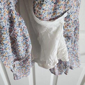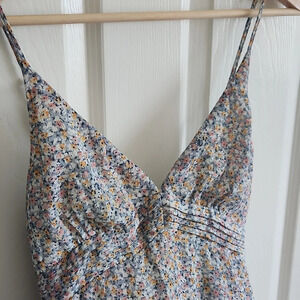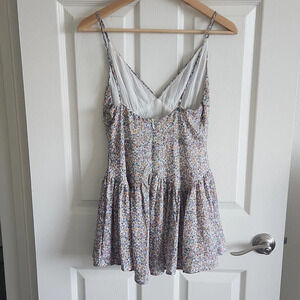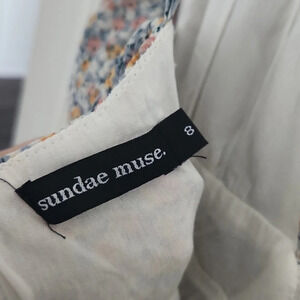 the cutest floral dress by sundae Muse. pretty floral, zips in back, thin straps, and shorts lining underneath. small imperfection on inside lining only, there is a small tear, as shown in last photo.