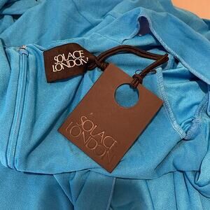 Solace London Lorena Azure Blue Draped Deep V Neck Midi Dress Size 4 is brand new with tags! Featuring: