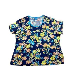 Scrub HQ Womens Plus Size Scrub Top Navy Blue Short With Vibrant Floral Design
